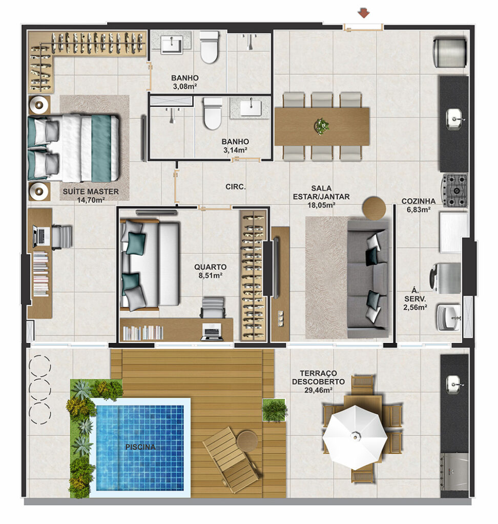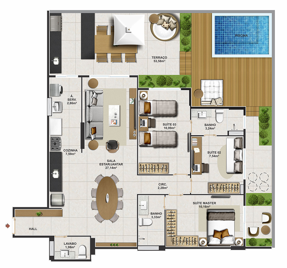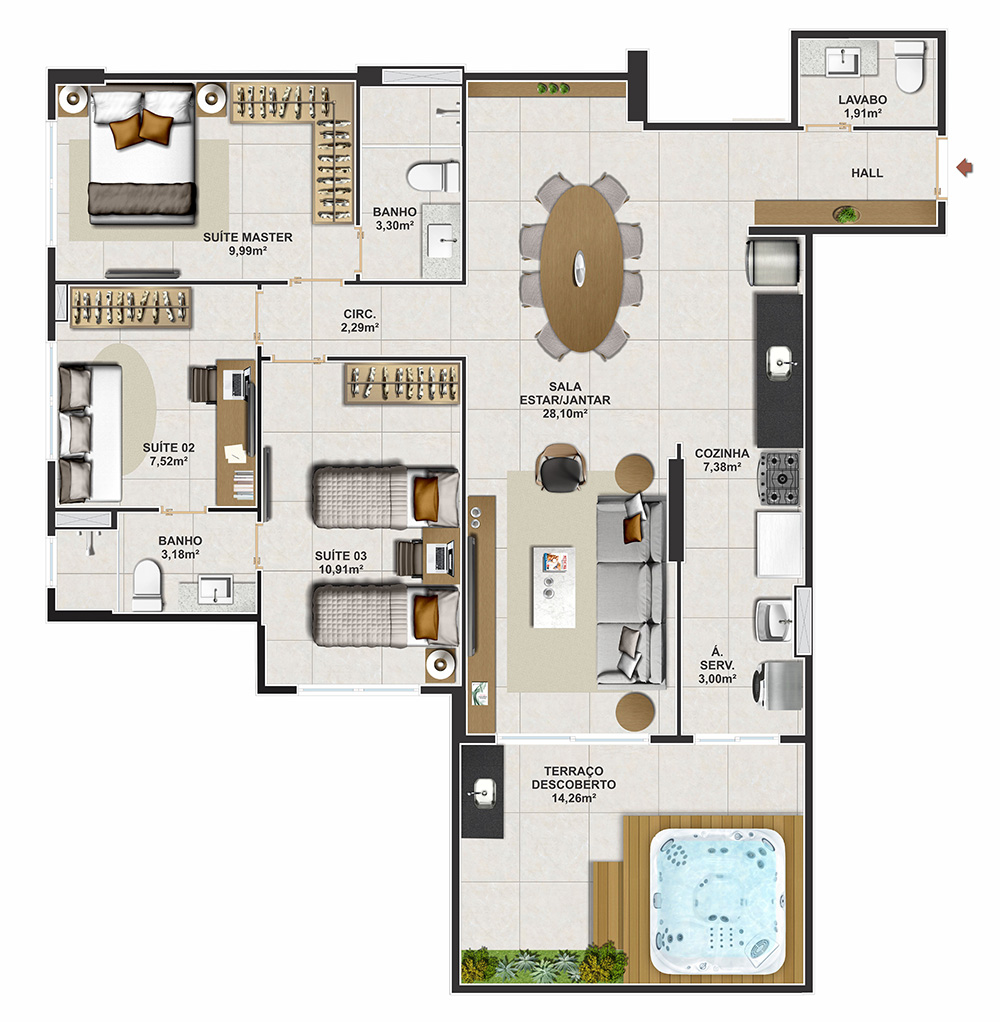 3 SUÍTES • 2Q E 3Q COM 1 SUÍTE